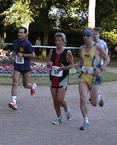 überrundete Läufer, die meinen Weg kreuzten, reichte es nicht ganz - auf dem Zielstrich waren wir Brust