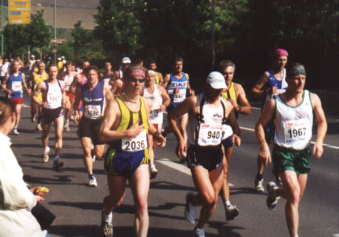Fast aus der ersten Startreihe heraus begann ich das Rennen an der Würzburger Friedensbrücke. 3:45 für den ersten Kilometer (aber bergab), 19:59 bei 5 km, 40:39 bei 10 km, 1:01:11 bei 15 km und 1:22:11