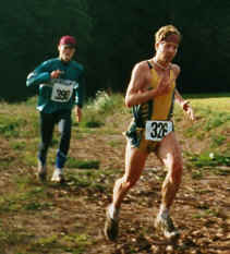 Mauser, dahinter ein Läufer in Grün: Thomas Ehrmann aus Weihenzell. Mein Abstand schien sich zu verringern. Auf der Rennbahn im Wald war es mir klar, da könnte noch etwas drin