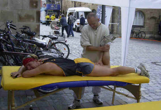 ausrollen im Zuschauerspalier - das wars dann wohl. Bei 15:57 blieb meine Uhr stehen. Immerhin: es gab Massagen, und einer der Bad Windsheimer, der sich noch in Ruhe meinen Beinen widmen konnte, stellte schon