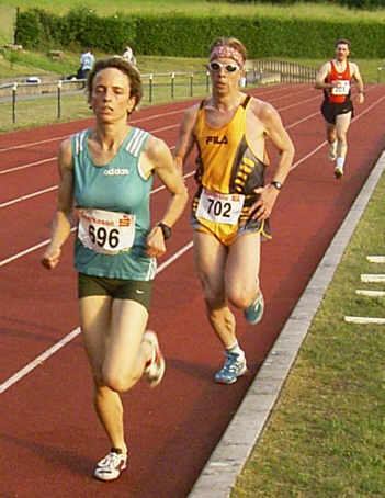 Es war zwar warm - für mich ohnehin zu warn - aber absolut windstill, als dann um 20 Uhr auf der Anlage des TV Gunzenhausen der Startschuß zum ersten der beiden 3000 m - Läufe fiel. Es ging flott los,