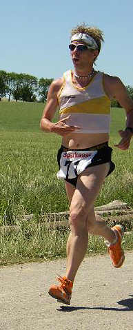 Hinein ins Dorf – wer kam mir entgegen? Thomas Czernicky. Eigentlich kein Wunder – er lebt im benachbarten Wörnitz und es ist für ihn fast das Heimspiel. Eigentlich könnte ich ja die 5 km mitlaufen, sagte