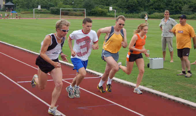 Vier Stadionrunden – vier Starter. Es wurde allein gegen die Uhr eine etwas eintönige Angelegenheit. Vom Start weg musste ich mein Rennen also alleine an der Spitze bestreiten 75 Sekunden für die erste Runde –