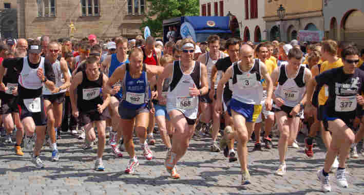 bei EinsKommaFünf begann die wilde Jagd auf dem Kopfsteinpflaster. Martin-Luther-Platz, Würzburger Straße, dann liefen zum ersten Mal Läufer auf die