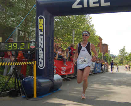lange Endspurt ging wie geschmiert. An der Kurze zur kurzen Zielgeraden standen dichtgedrängt die Zuschauer und da war ich wieder Dreizehnter. 39:21: Jahresbestzeit, aber nicht das, was ich wollte. Das