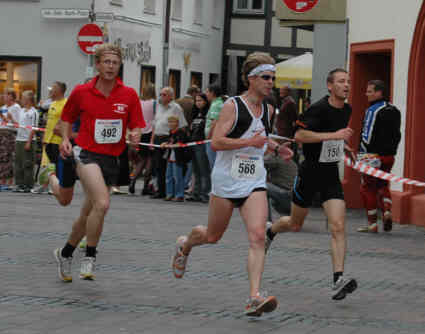 Haltungsnoten vergab. Es ging auf die Jägerndorfer Straße Richtung Brückencenter. Einen Läufer noch überholt, aber Manfred Alter auf Heilsbronn war inzwischen auf Tuchfühlung. Ich wusste, es