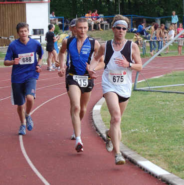 es diesmal der Fürther oder wieder einer der Gunzenhäuser – ich weiss es nicht. Aber bereits eingangs der vorletzten Zielgerade war ich wieder vorne. Nun galt es nur noch, das Tempo durchzuziehen. Nach