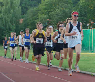 sich an die Spitze dieser Gruppe. Nach 700 Metern führte ich dann wieder diese Gruppe an. 3:35 für den ersten Kilometer und es bildete sich eine kleine Lücke zwischen mir und meinen Verfolgern, wie lange es aber aus