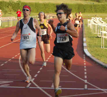 meiner Sicht noch gut gehen sollte, wusste ich natürlich nicht. Zwei Runden vor Ultimo kam jemand zügigen Schrittes von hinten: es war Bruno Schumi, der seine letzte Runde in Angriff nahm und am Ende in 9:08,89