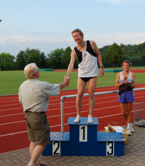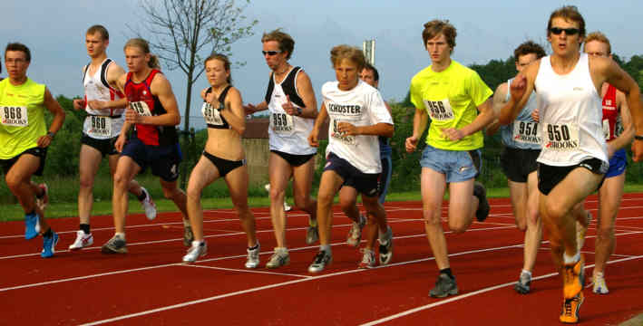 Lichtenfels die zweieinhalb Stadionrunden anzugreifen. Ab Abend eines heißen Fronleichnamtages trafen wir im sc hönen Stadion ein. Die Startunterlagen gabs ohne Nachfrage, bei den dotterweichs bin ich schon wohlbekannt. Mit meinen gemeldeten 3:00 war ich im A-Lauf,